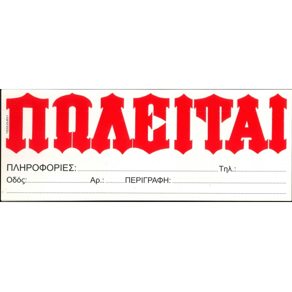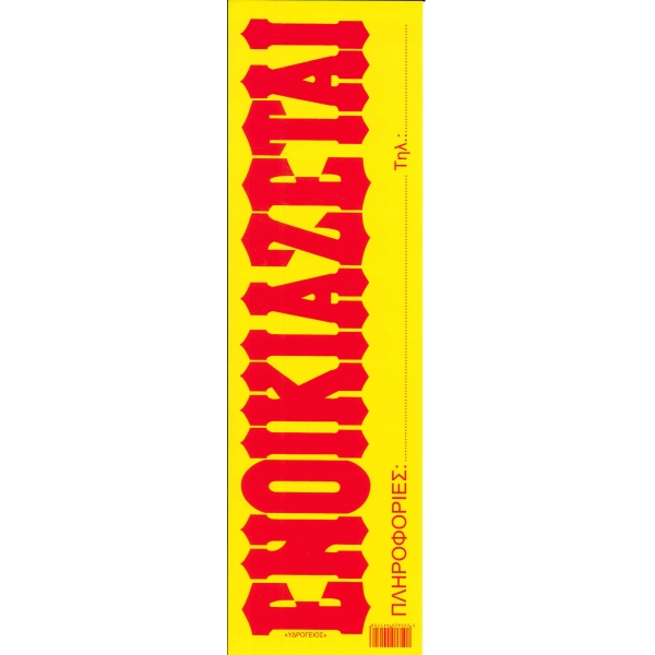 Αυτοκόλλητο ΕΝΟΙΚΙΑΖΕΤΑΙ 10χ35