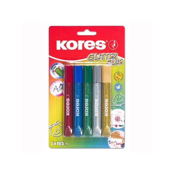 Χρυσόκολλα KORES χειροτεχνίας σε σωληνάριο 10,5ml x 5 φωτεινά χρώματα σε blister