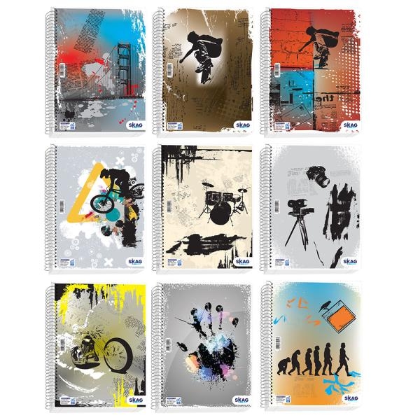 Skag Τετράδιo Σπιράλ Basic Ριγέ 17χ25 3 Θεμάτων Μαύρο 80γρ Ν 9205